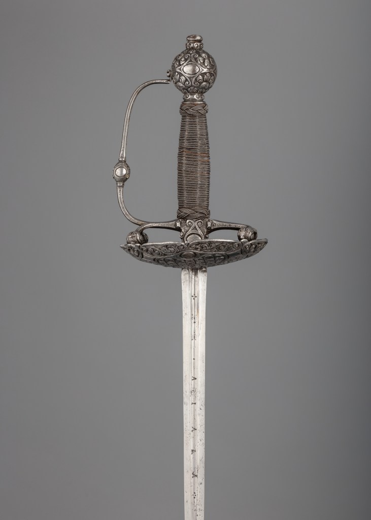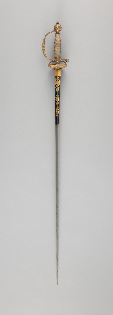 I find smallswords charming in part because high-status examples are works of art in their own right, but also because both fancy and unpretentious examples strike me as extremely “efficient” weapons, managing to create a respectable amount of sword from less than a pound of material.